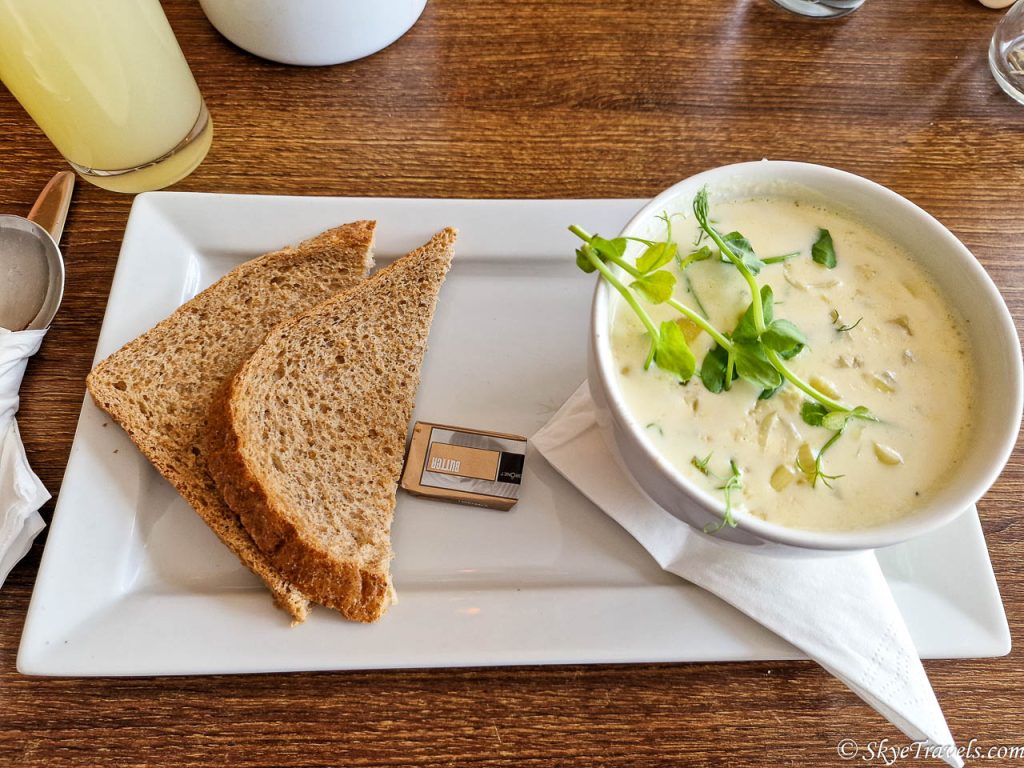 As Vanesa and I were already quite full from breakfast at Annie’s only a couple hours earlier, we each ordered a soup. I went with the Cullen skink, and Vanesa had the soup of the day. I can honestly say the Cullen skink was one of the best I’ve ever had, if not the best. If I remember the story correctly from the owner, Greg, he learned the recipe from a man working on an oil rig and then perfected it.