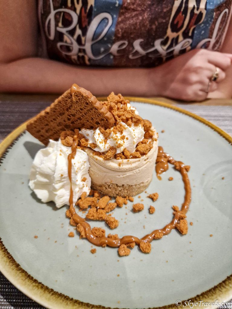 Our other dishes were similarly delicious. The prawn Marie Rose starter was excellent, but what really took the cake was the dessert, pun intended. Vanesa ordered the Biscoff cheesecake, and I had the traditional Scottish sticky toffee pudding. Both were absolutely incredible, particularly the latter, which was one of the best I’ve ever had.
