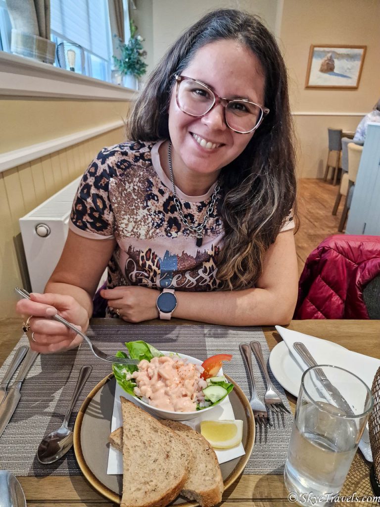 For seafood on the North Coast 500, the Seafood Shack in Ullapool is one of the best options. The staff is friendly, the ambiance outside (when it’s not raining) is relaxing, and the food is incredible. You’ll find it on the west end of town one street up from the harbor. If you’re waiting for the ferry to the Isle of Lewis and Harris, you can go up the stairs at the back of the car park directly to the shack.