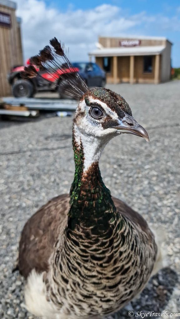 The farm itself is beautiful, with so many amazing animals. They have nine Hairy Coos, a Clydesdale horse, a Shetland pony, a flock of cute Swiss Valais Blacknose sheep, a Shire horse, several peacocks, a business of ferrets, and now a playful whippet puppy. You need permission from the staff to visit the animals, and their invitation for Vanesa and me to wander the farm was one of the top highlights of our North Coast 500 journey.